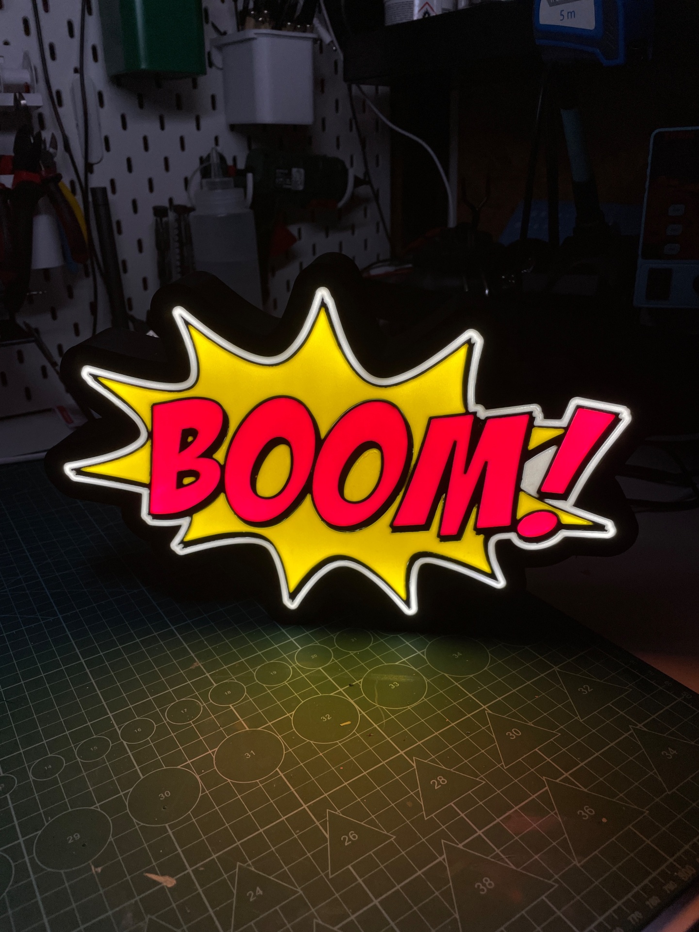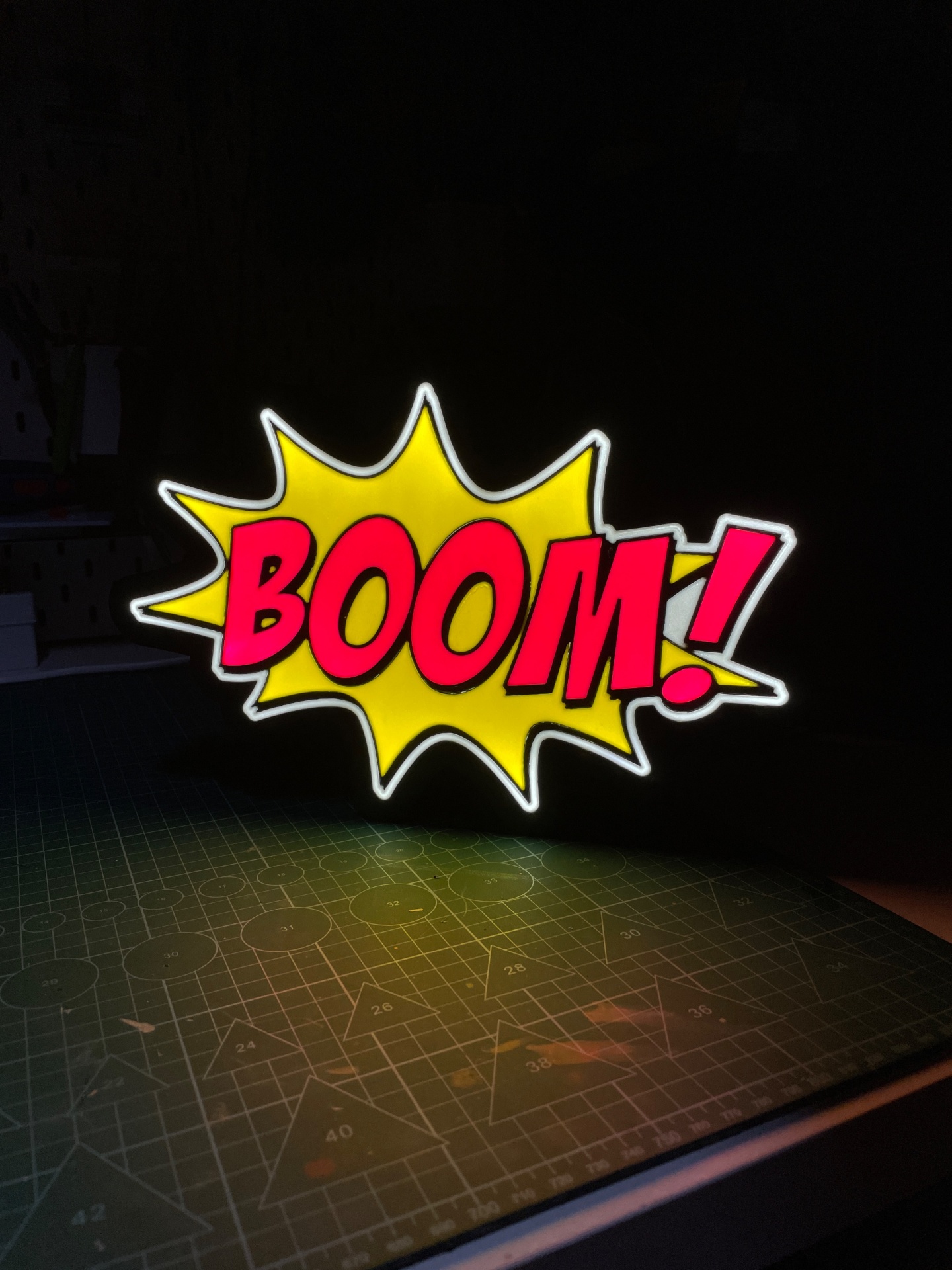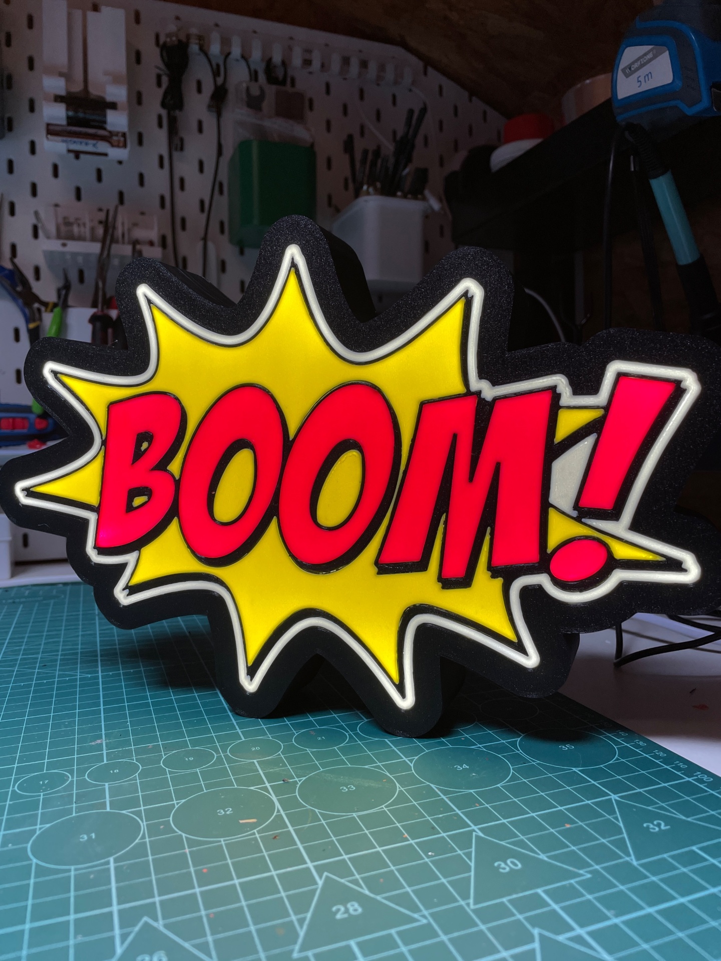 Luminária BOOM! 39,99 € Desconto de %. Partilhar Tamanho 24Cm 35cm Comprar Contactar 2 unidades em stock Luminária BOOM! em impressão 3d disponível em 2 tamanhos 22cm e 35cm (no lado maior). Luz LED com ligação cabo USB com interroptor, feito em PLA de boa qualidade e de cores vibrantes. Marca A3D.PT Tags luzledluminariaBOOMCaixa luz Características